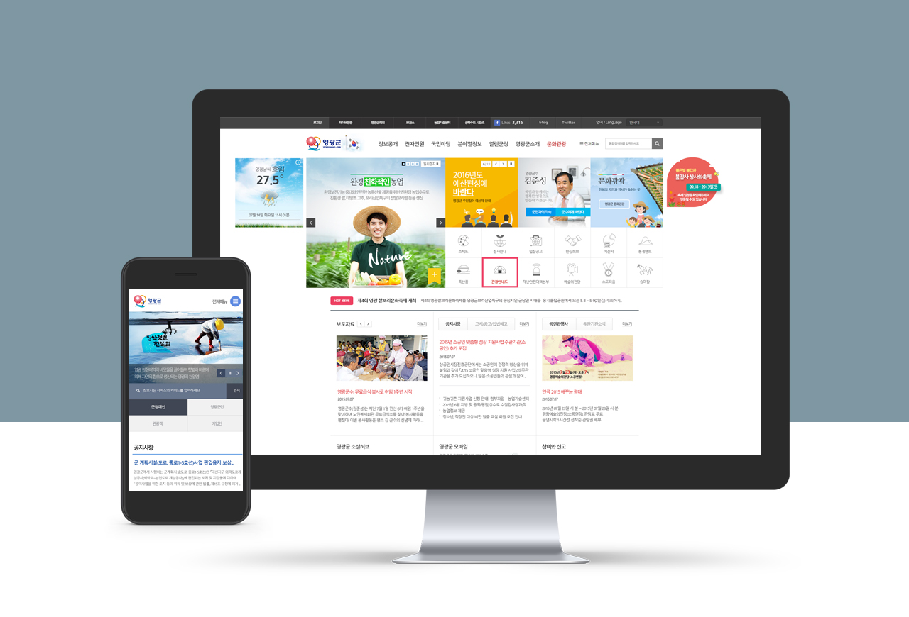 영광군청 기존 웹사이트는 복잡한 구조와 오래되어 정리되지 않은 콘텐츠로 인하여